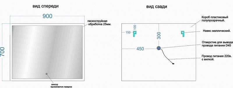 Тип:зеркало с подсветкой