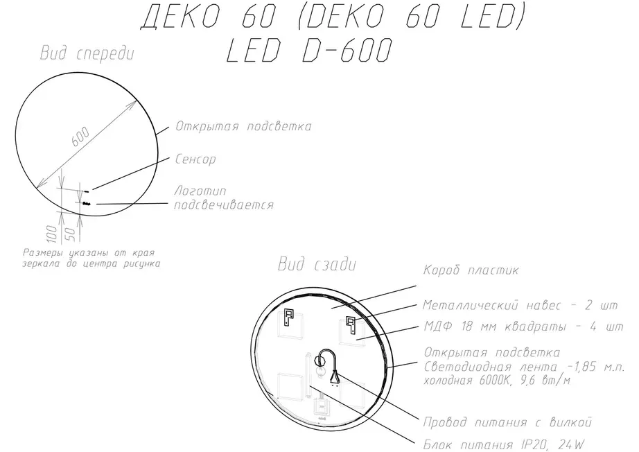 Зеркало настенное DECO 60 D600 с LED-подсветкой - это сочетание стиля и современного дизайна, оно прекрасно вписывается в любой интерьер. Сенсорный датчик позволяет управлять включением Led-подсветки касанием.