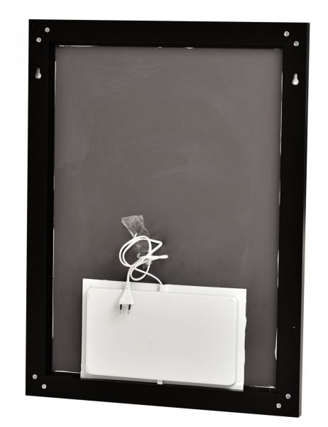 Зеркало нестенное KANTO BLACK 60, 600х800 с LED подсветкой и сенсорным выключателем. Алюминиевый матовый профиль черного цвета. Потребляемая мощность 26 W. Класс защиты IP44. Стеклянное зеркальное полотно Mirox производства компании AGC Glass Russia, принадлежащей международной группе мирового лидера по производству стекла AGC Inc. LED подсветка, сенсорный выключатель, блок питания, крепление зеркала (кронштейн с крюком), клеммник, сетевой шнур. Материал корпуса - Анодированный алюминий (профиль) черного цвета, задняя стенка пластик (АБС). Можно использовать в любом помещение: ванная и туалет, прихожая, спальня, гостиная