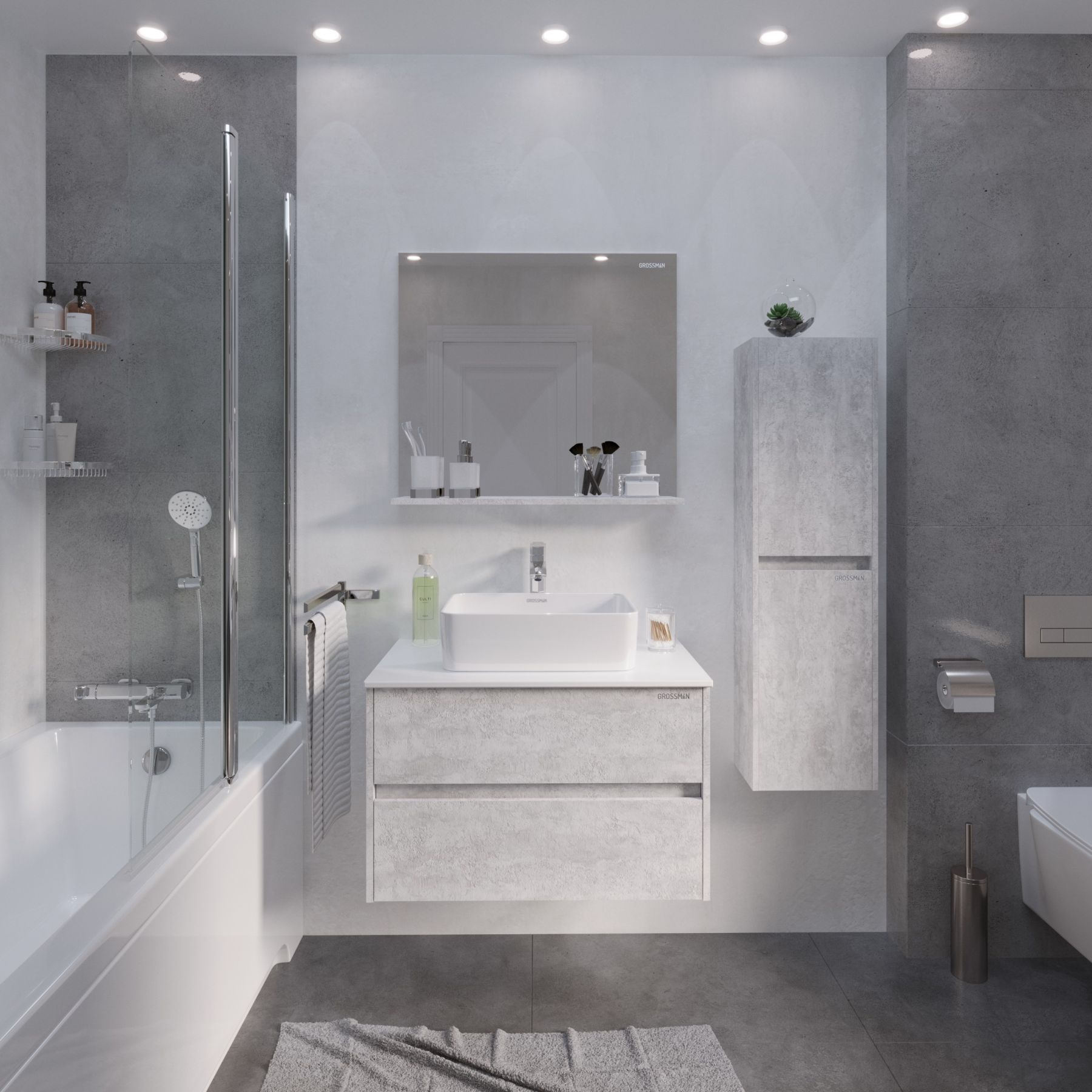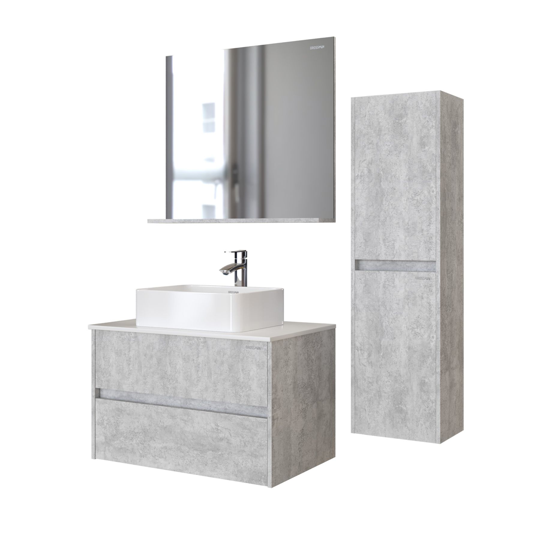 Зеркало с полкой Grossman Эдванс 80см цемент светлый 208007