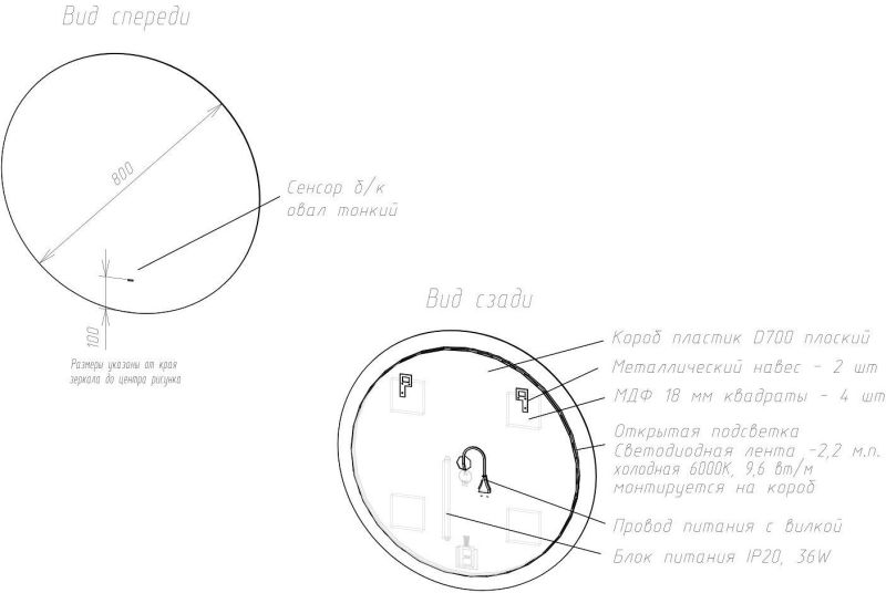 Тип:зеркало с подсветкой