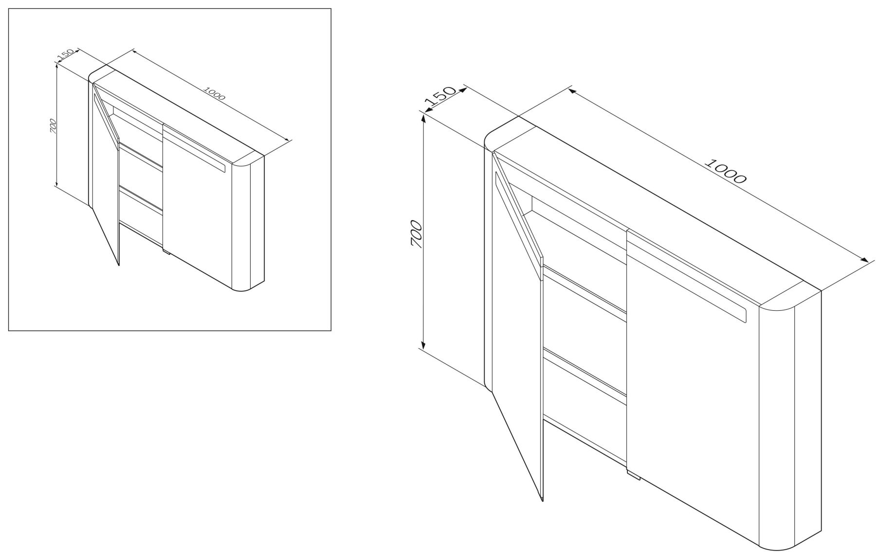 M30MCX1001BG Sensation, зеркало, зеркальный шкаф, 100 см, с подсветкой, светло-голубой, глянцевая