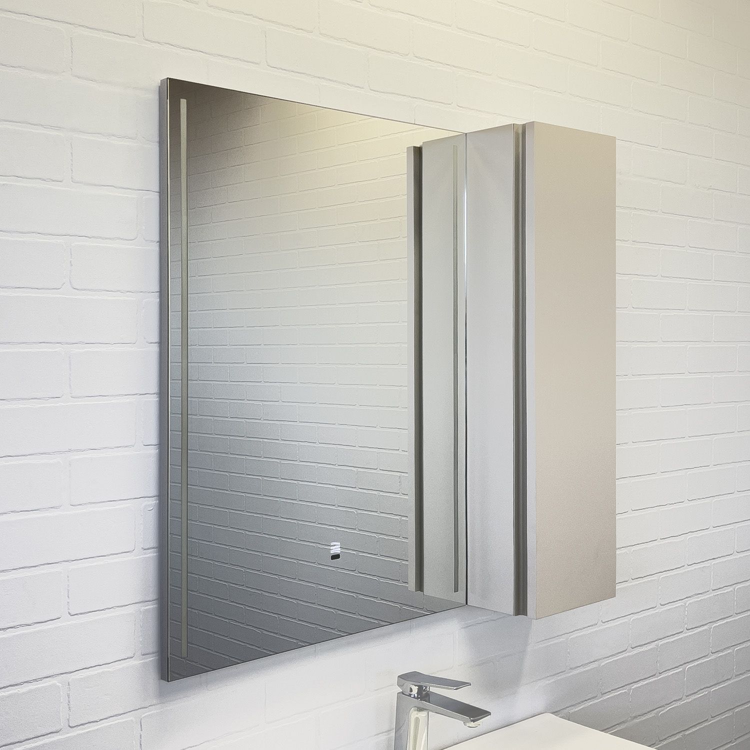 Зеркало-шкаф Comforty Бильбао 00-00014154 80 смЗеркальное высококачественное полотно с амальгамой на основе серебра. Створка оснащена петлями с системой плавного закрывания. За створкой две полки. Открытие створки производится при помощи вертикальной профильной ручки интегрированной в левую боковую стенку шкафчика. Зеркало оборудовано фронтальной LED подсветкой с бесконтактным выключателем со встроенной функцией регулировки яркости. Температура подсветки 6000-6500K холодный свет. Зеркало-шкаф выпускается только с правым размещением мебельного элемента.