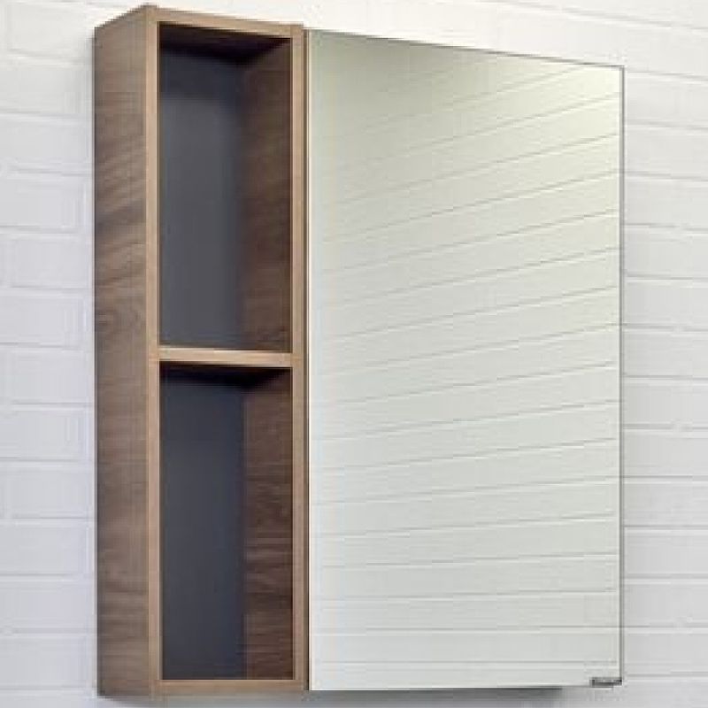 Зеркало-шкаф Comforty Соло 00-00011589 70 смЗеркальное высококачественное полотно с амальгамой на основе серебра. За створкой две горизонтальные полки. Зеркальный шкаф универсален, может быть подвешен в левом и правом варианте.