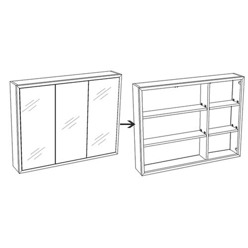 • Зеркало-шкаф закреплено на металлическом каркасе