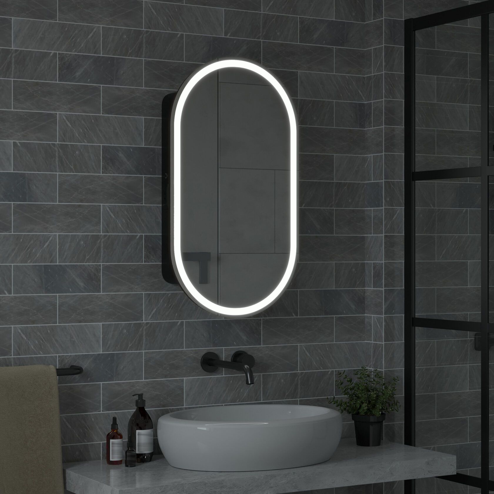 Представляем Зеркальный шкаф для ванной комнаты с контурной LED подсветкой Reflection Black 450х800 RF2003BL