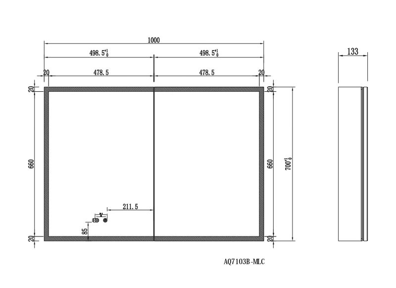 Габариты (Д В Ш), мм: 1000*700*133Алюминиевый зеркальный шкаф с подсветкойФорма: прямоугольнаяМонтаж: подвесной, монтируется на поверхность или в нишуДве зеркальные дверцы шириной 49,85см. Двусторонние зеркальные двери и зеркальные боковиныДве стеклянные полки 8 мм.Материал: алюминийЦвет: хромЗеркальный салонКруговая подсветка SMD 2835-120P, цветовая температура 2500K/6500KФункция антизапотевания2 режима переключения света/ цветаСенсорное управлениеПетли BLUM, открывание 95 градусов с доводчиком, обеспечивающим плавное закрываниеМебель поставляется в собранном видеДополнительное оснащение зеркала: подвесыГарантия: 1 год
