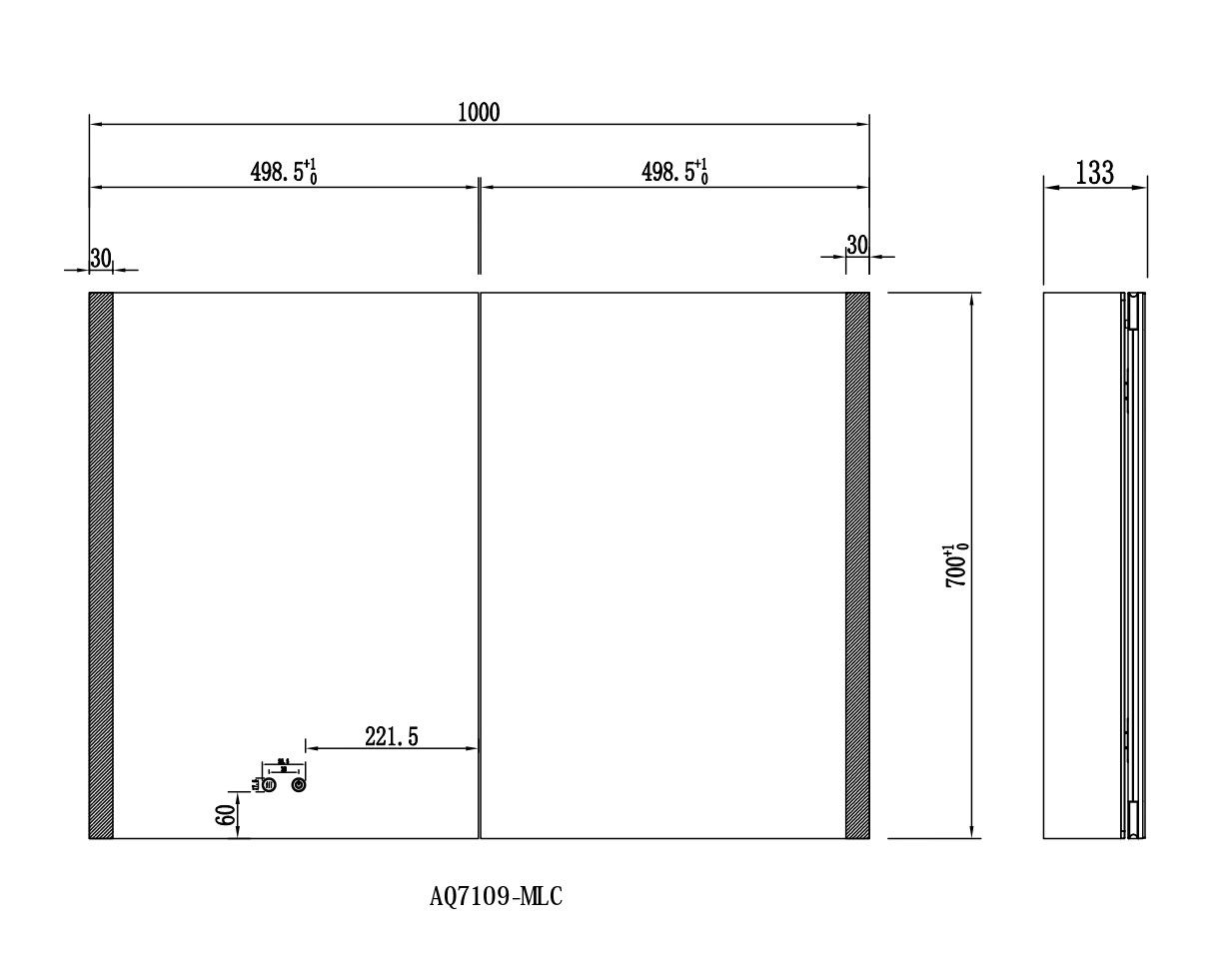 Габариты (Д В Ш), мм: 1000*700*133Алюминиевый зеркальный шкаф с подсветкойФорма: прямоугольнаяМонтаж: подвесной, монтируется на поверхность или в нишуДве зеркальные дверцы шириной 49,85 см. Двусторонняя зеркальная дверь и зеркальные боковиныДве стеклянные полки 8 мм.Материал: алюминийЦвет: хромЗеркальный салонКруговая подсветка SMD 2835-120PЦветовая температура 2500K/6500KЛевая/правая боковая акриловая подсветкаФункция антизапотевания2 режима переключения света/ цветаСенсорное управлениеПетли DTC, открывание 95 градусовС механизмом доводчика, обеспечивающим плавное закрываниеМебель поставляется в собранном видеДополнительное оснащение зеркала: подвесыГарантия: 1 год