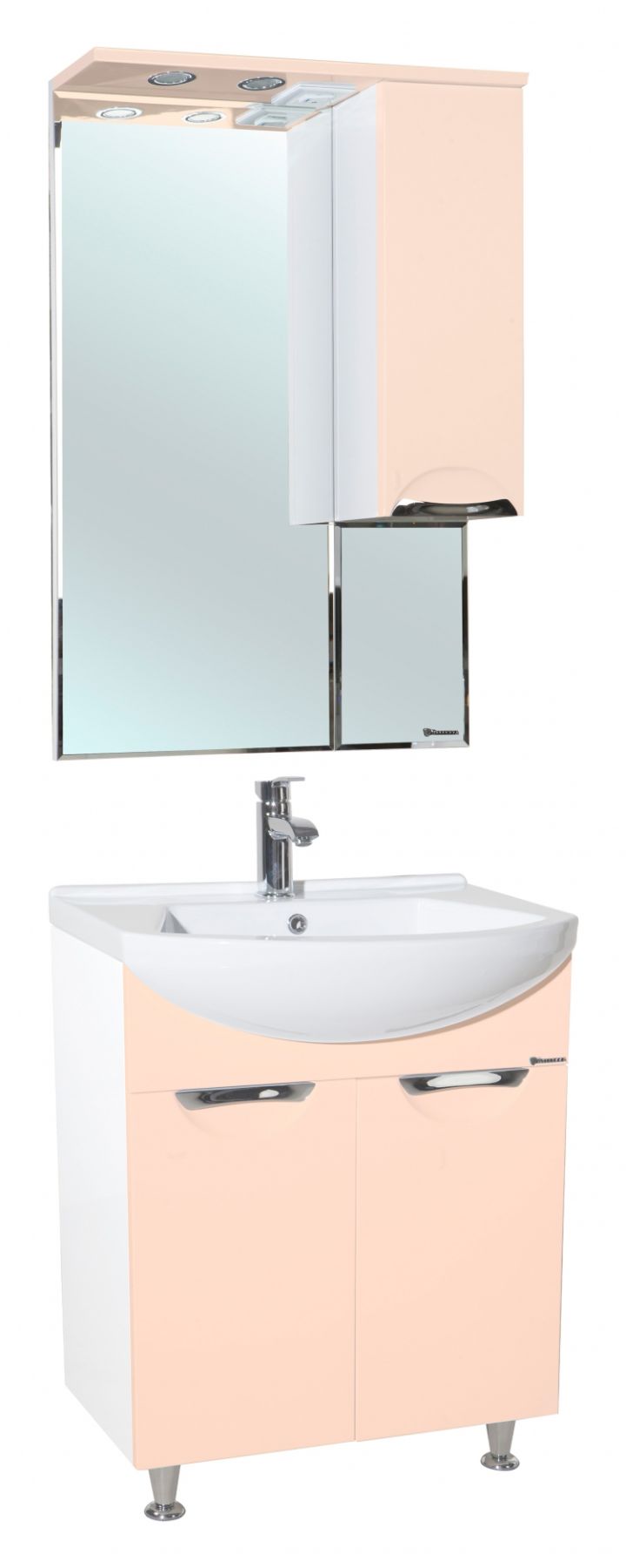 В производстве используют только качественные влагостойкие материалы (ВЛДСП), в составе которых полностью отсутствуют опасные вещества. Данная серия выполнена в эксклюзивном дизайнерском решении в лучших традициях современного стиля. Бежевый, основной цвет исполнения Bellezza, гармонирующий с большинством интерьерных решений. Шкаф-зеркало предусматривает удобную и вместительную систему хранения. Зеркало Bellezza оснащено галогеновой подсветкой, позволяющей комфортно провести утренние процедуры.