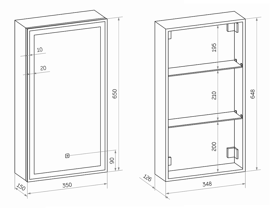 Зеркало-шкаф "Allure LED" 350х650 правый с розеткойLED подсветка 6000К; сенсорный включатель с функцией димирования, Материал корпуса - влагостойкий ЛДСП+МДФ в пленке