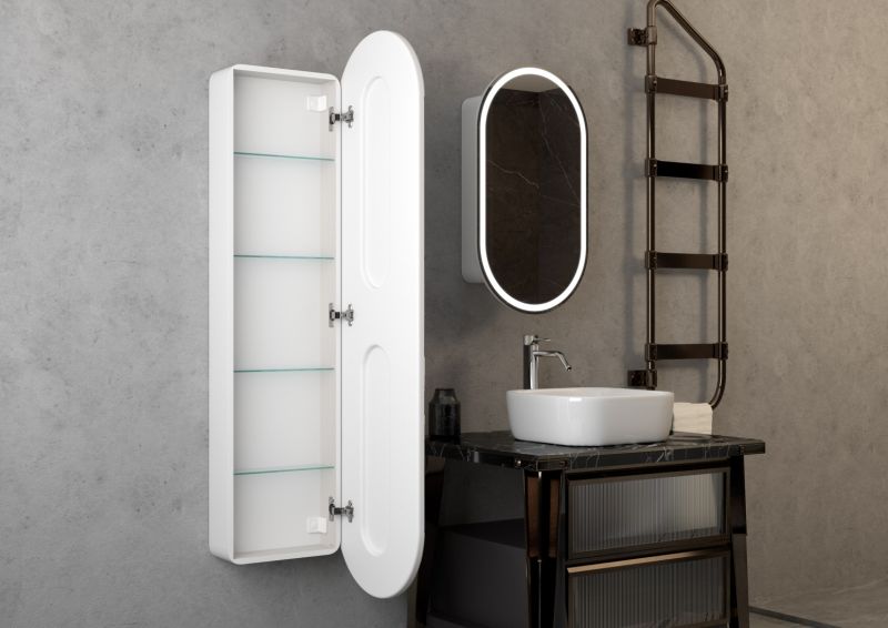 Зеркало-пенал "Elmage white LED" 450х1600LED подсветка 6000К; сенсорный включатель с функцией димирования, материал корпуса - МДФ, пленка ПВХ, цвет корпуса - белый, реверсивные крепления