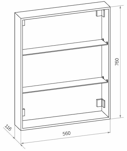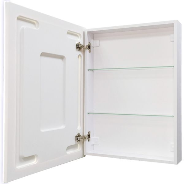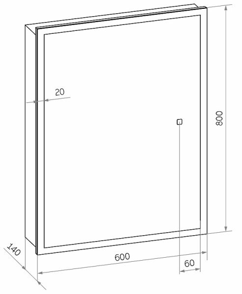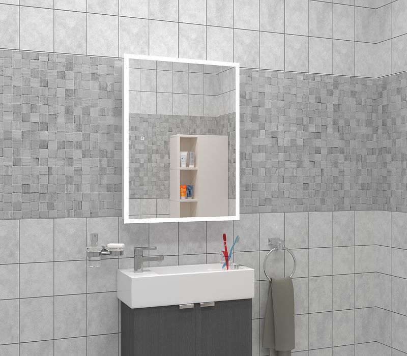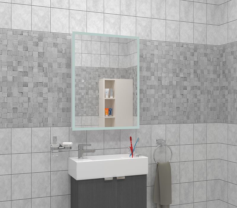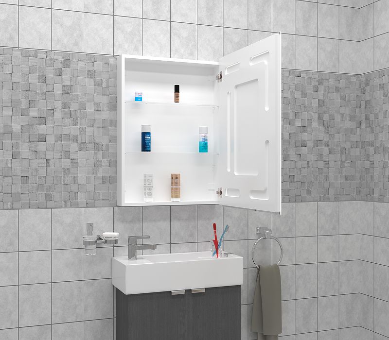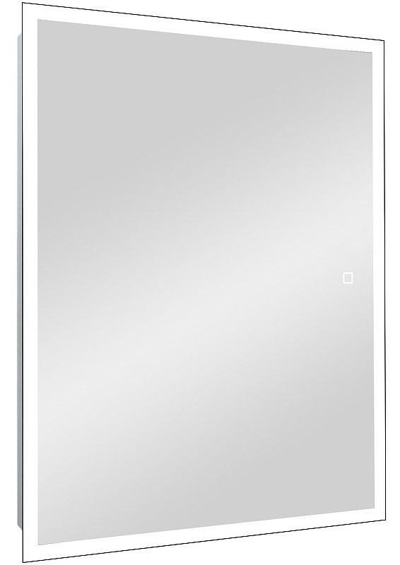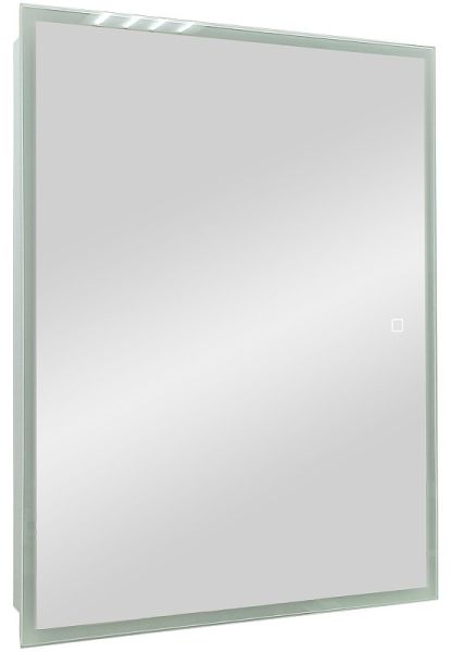 Зеркало-шкаф "Reflex LED" 600х800LED подсветка 6000К; сенсорное включение справа по центру, реверсивные крепления, пластиковый короб, прямые углы на коробе и зеркале, полка/2 шт, без розетки, петли Firmax