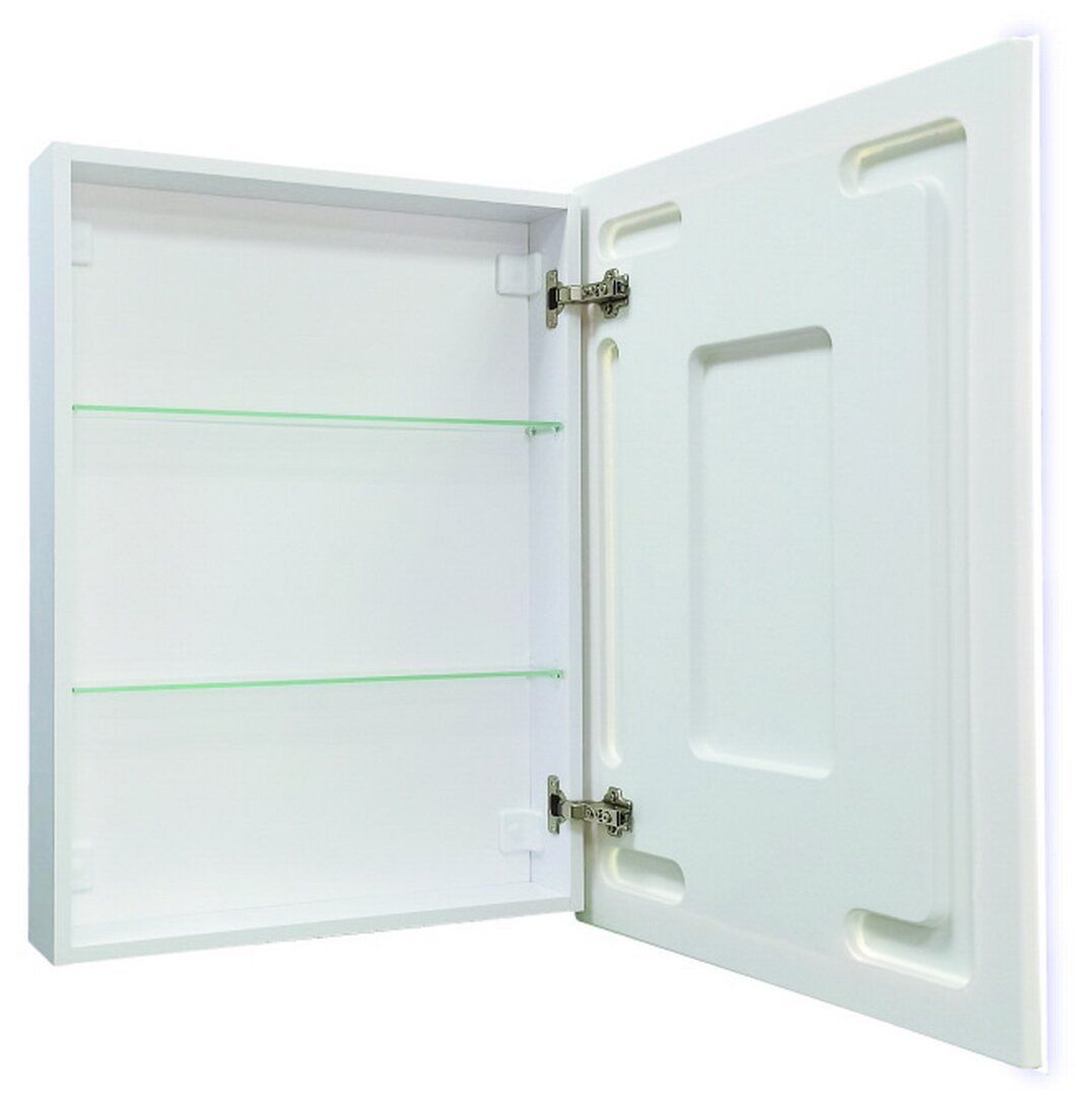 Зеркало-шкаф "Reflex LED" 500х800LED подсветка 6000К; сенсорное включение справа по центру, реверсивные крепления, пластиковый короб, прямые углы на коробе и зеркале, полка/2 шт, без розетки, петли Firmax