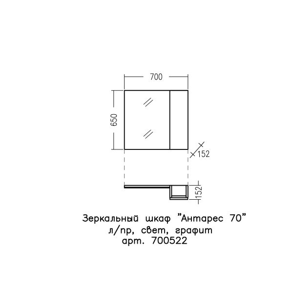 Зеркало-шкаф с подсветкой Санта Антарес 700522 70 см графит матовый