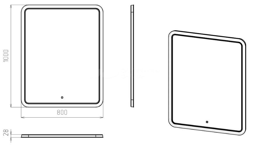 Зеркало STWORKI Монтре Мон.02.80/W 80 с подсветкой, сенсор на зеркале, квадратное, белое, настенное купить