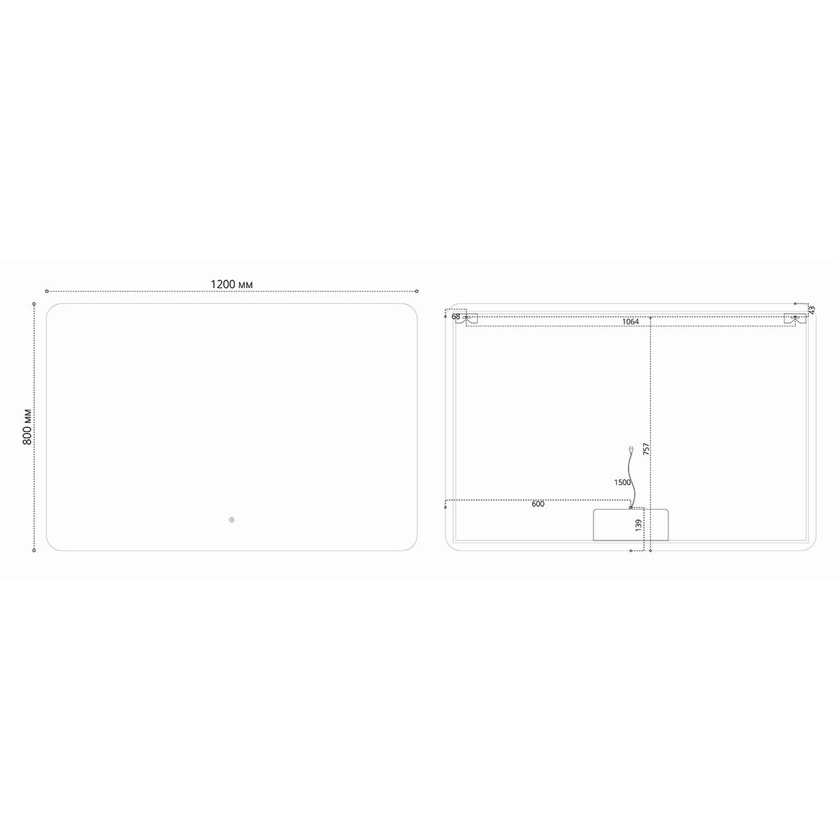 Зеркало Vincea LED VLM-3BE120 1200×800 c сенсорным выключателем и диммером
